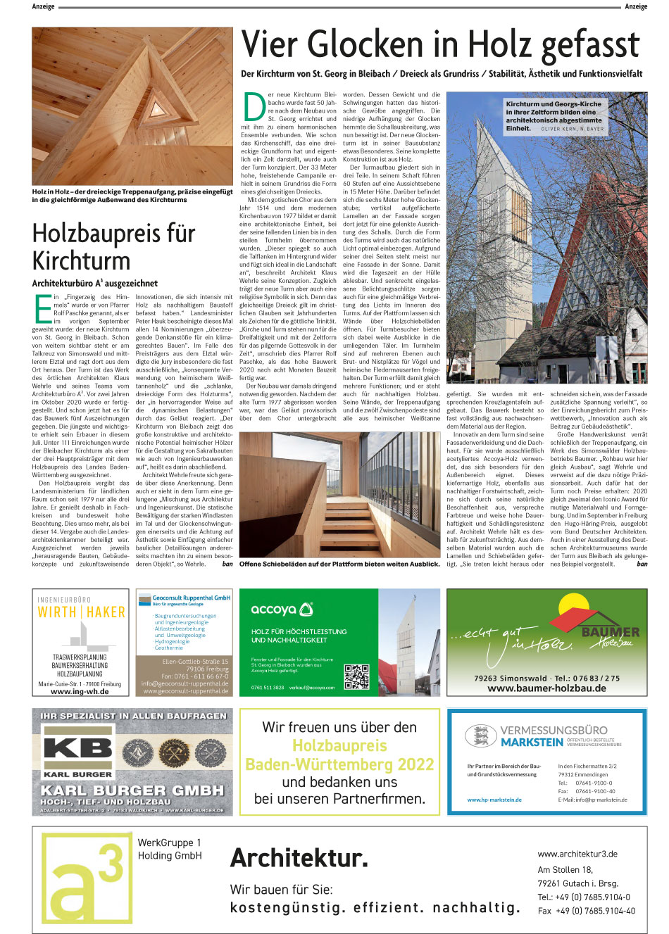 The church tower in Bleibach was awarded the 2022 wood prize.