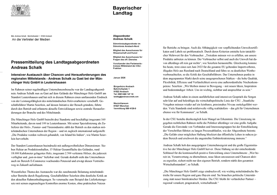 Pressemitteilung des Landtagsabgeordneten: